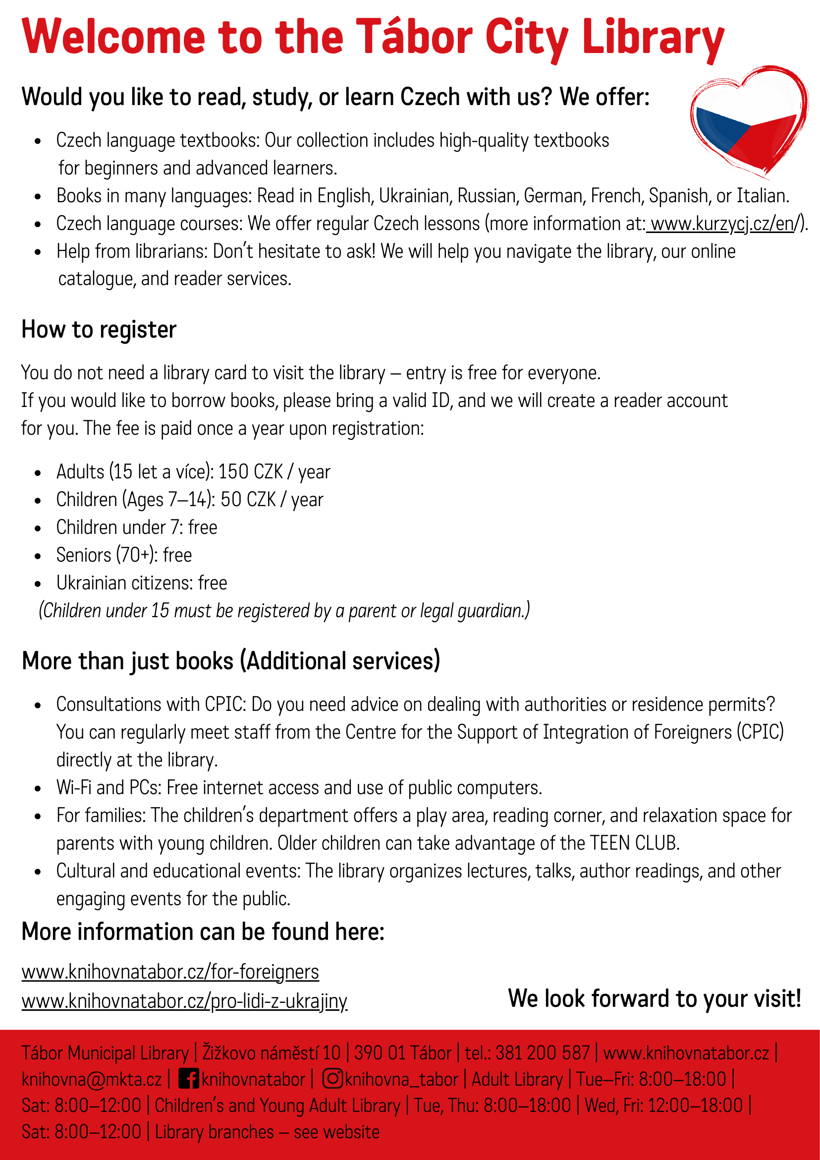 - What does the library offer to foreigners? https://www.knihovnatabor.cz/for-foreigners
